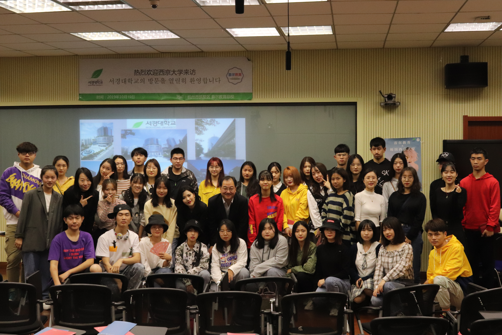 活動的開始,金教授為大家介紹了西京大學各專業概況,使同學們對西京大學有了初步的了解。其中美容藝術學院在西京大學最為著名。