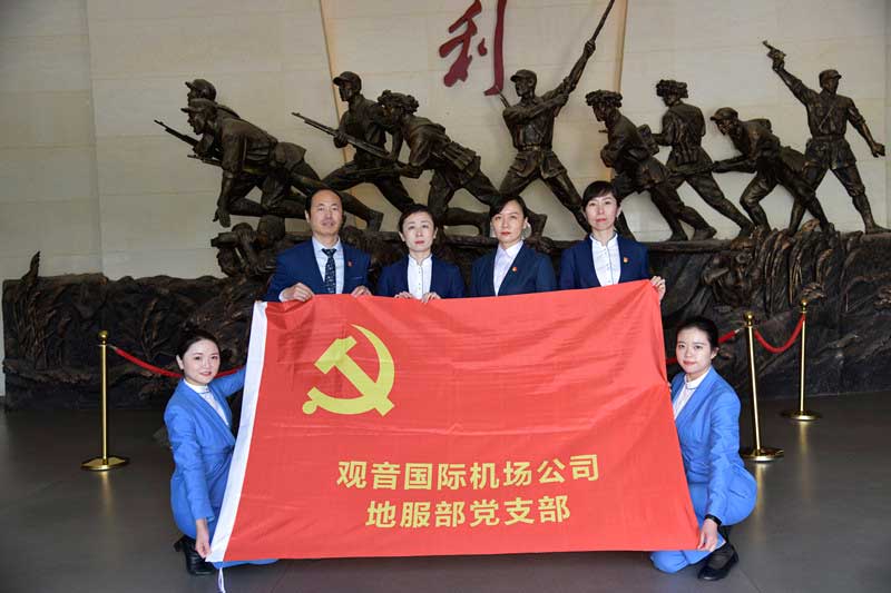 2021年4月29日上午,機(jī)場公司地服部黨支部攜手候機(jī)樓派出所黨支部以慶祝建黨100周年為契機(jī),在邳州市碾莊戰(zhàn)役紀(jì)念館開展了“憶苦思甜學(xué)黨史,攜手并進(jìn)搞共建”的黨團(tuán)共建活動。地服部黨團(tuán)員代表以及候機(jī)樓派出所全體黨員共計17人參與了此次活動。