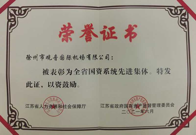 近日,徐州市觀音國際機(jī)場有限公司被江蘇省人力資源和社會(huì)保障廳、江蘇省政府國有資產(chǎn)監(jiān)督管理委員會(huì)聯(lián)合表彰為2021年全省國資系統(tǒng)先進(jìn)集體。
