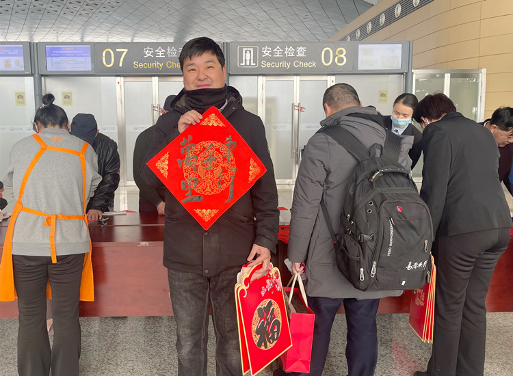 春節(jié)貼春聯(lián)是中華民族一直延續(xù)的傳統(tǒng)文化,此次活動(dòng)讓廣大旅客真切的感受到真情服務(wù),現(xiàn)場制作春聯(lián)、寫“福”送“?!毕矐c祥和的氣氛,為旅客春運(yùn)回家路增添年味和暖意。