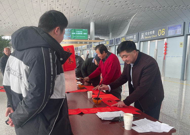 春節(jié)將至,年味漸濃。2月7日上午,徐州機(jī)場在T2航站樓二層出發(fā)廳舉辦“揮墨凝書香 迎春送祝?!被顒?dòng),特邀市書法家現(xiàn)場為旅客書寫春聯(lián)、送“福”字,助力春運(yùn),送福四方,吸引了廣大旅客積極參與迎春送“?!被顒?dòng)。
